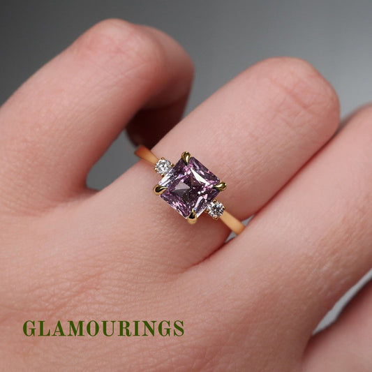1.7ct Radiant Peach Sapphire Engagement Ring