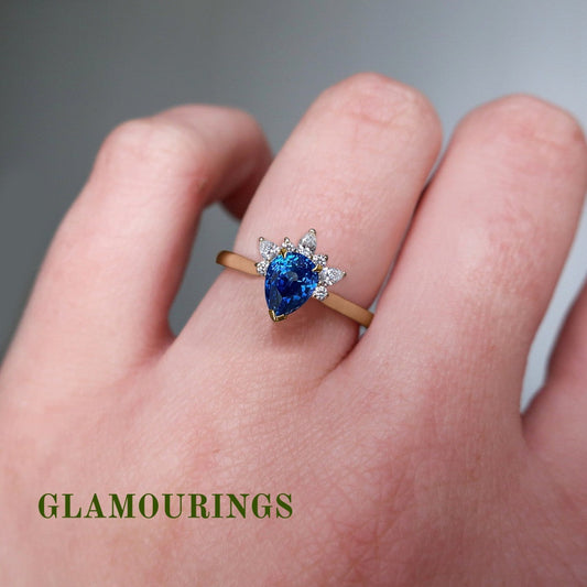 1.5ct Pear Australian Parti Teal Sapphire Engagement Ring