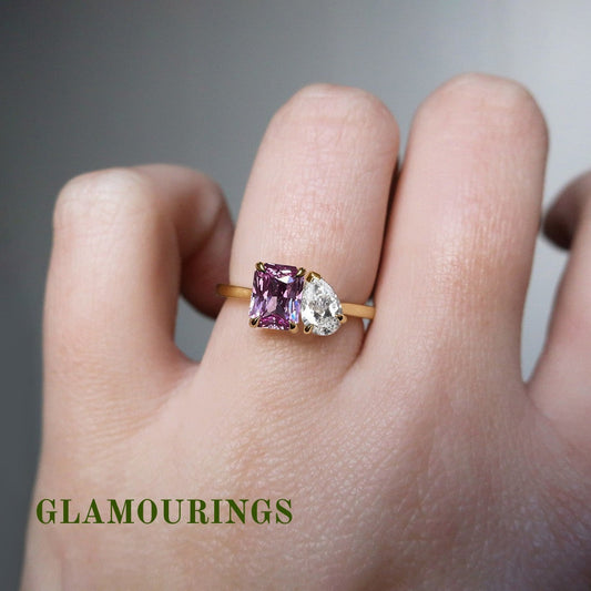 1.7ct Radiant Peach Sapphire Engagement Ring