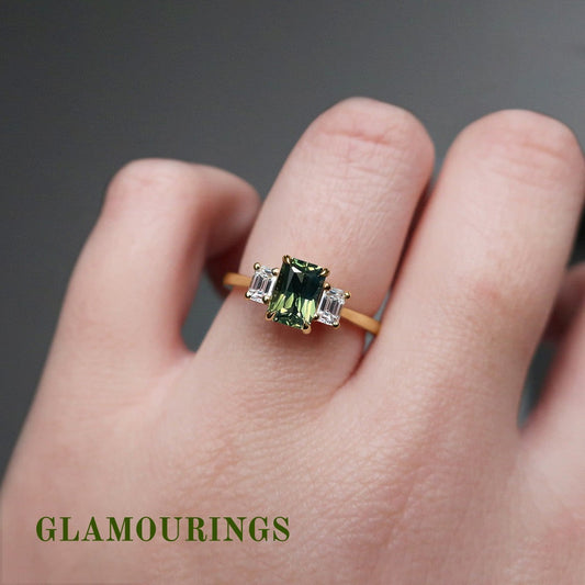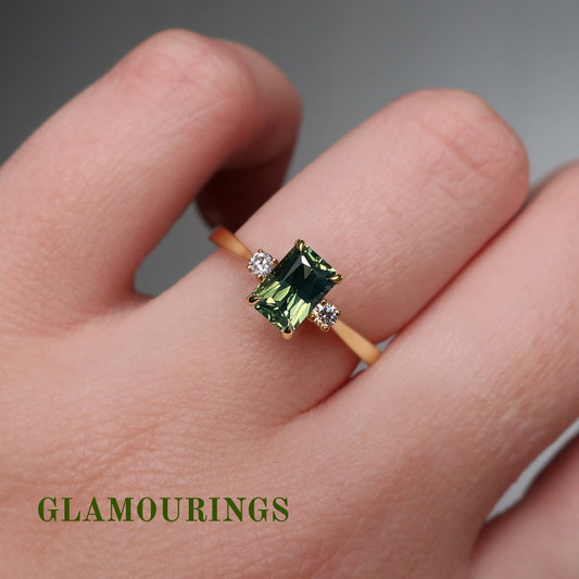1.11ct Emerald Cut Australian Parti Teal Sapphire Engagement Ring