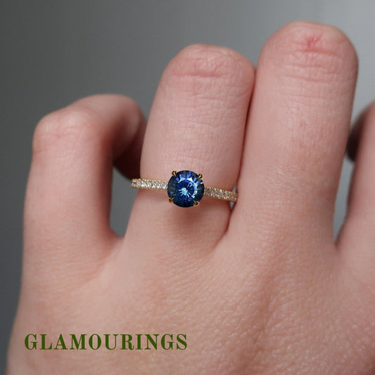 1.04ct Round Australian Parti Teal Sapphire Engagement Ring
