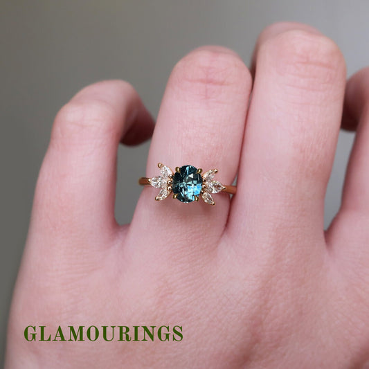 1.5ct Pear Australian Parti Teal Sapphire Engagement Ring