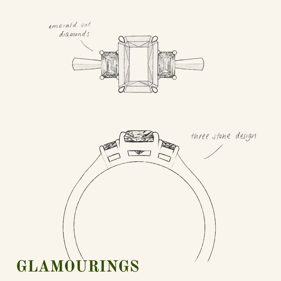 Enhanced by two sparkling emerald cut diamonds either side, the Zara setting features a stunning geometric elegance, highlighting the centre stone with a modern design