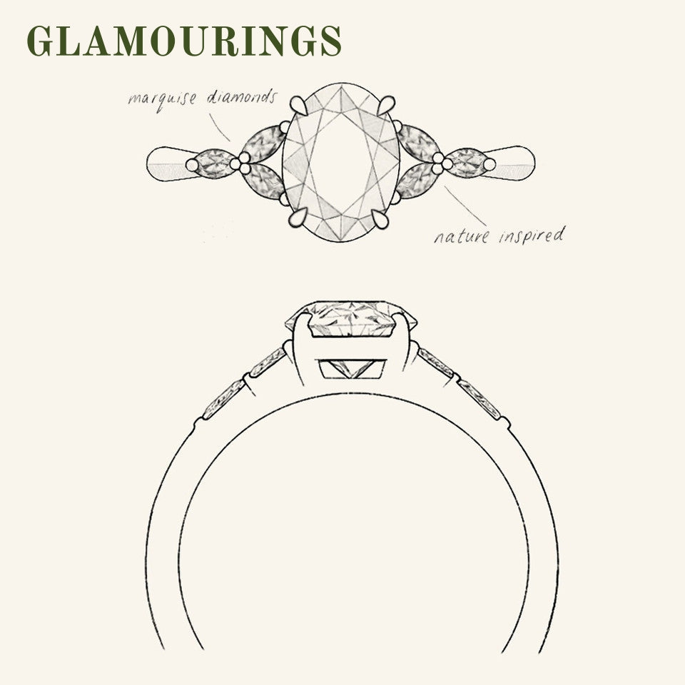 Featuring a captivating cluster of 3 marquise cut side diamonds highlighting the centre stone, the Aria setting reflects a modern twist on a classic design.