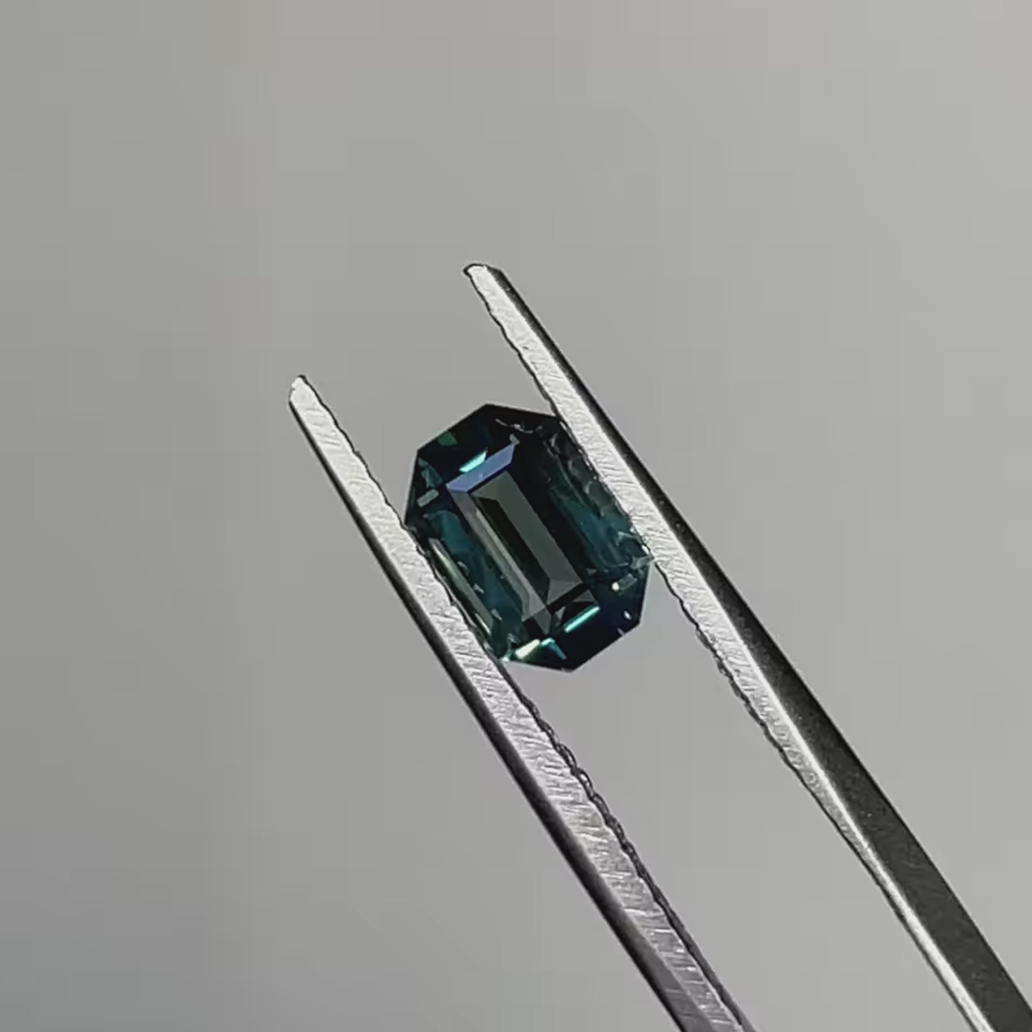 1.11ct Emerald Cut Australian Parti Teal Sapphire Engagement Ring