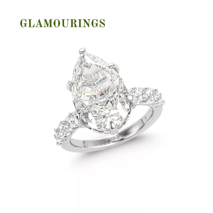 "Tear of Light" is an exquisite and elegant pear-shaped diamond ring that combines classic cutting with modern minimalist lines, just like a drop of shining tears blooming on the fingertips. The main stone is a carefully cut pear-shaped diamond, combined with a round diamond ring, highlighting the wearer's extraordinary taste and gentle power. Suitable for engagement, anniversaries or luxurious daily wear, it is a high-end jewelry with both romance and power.